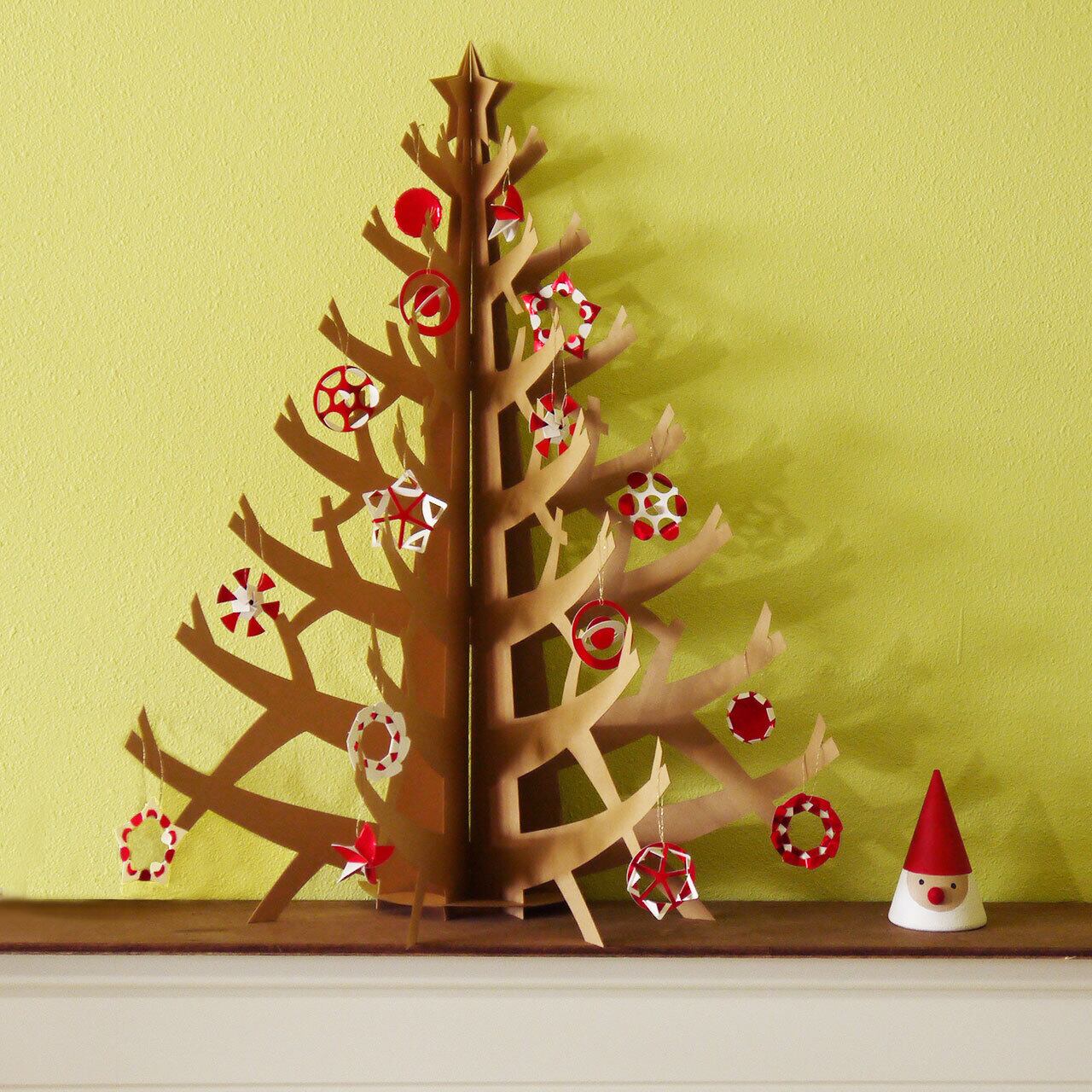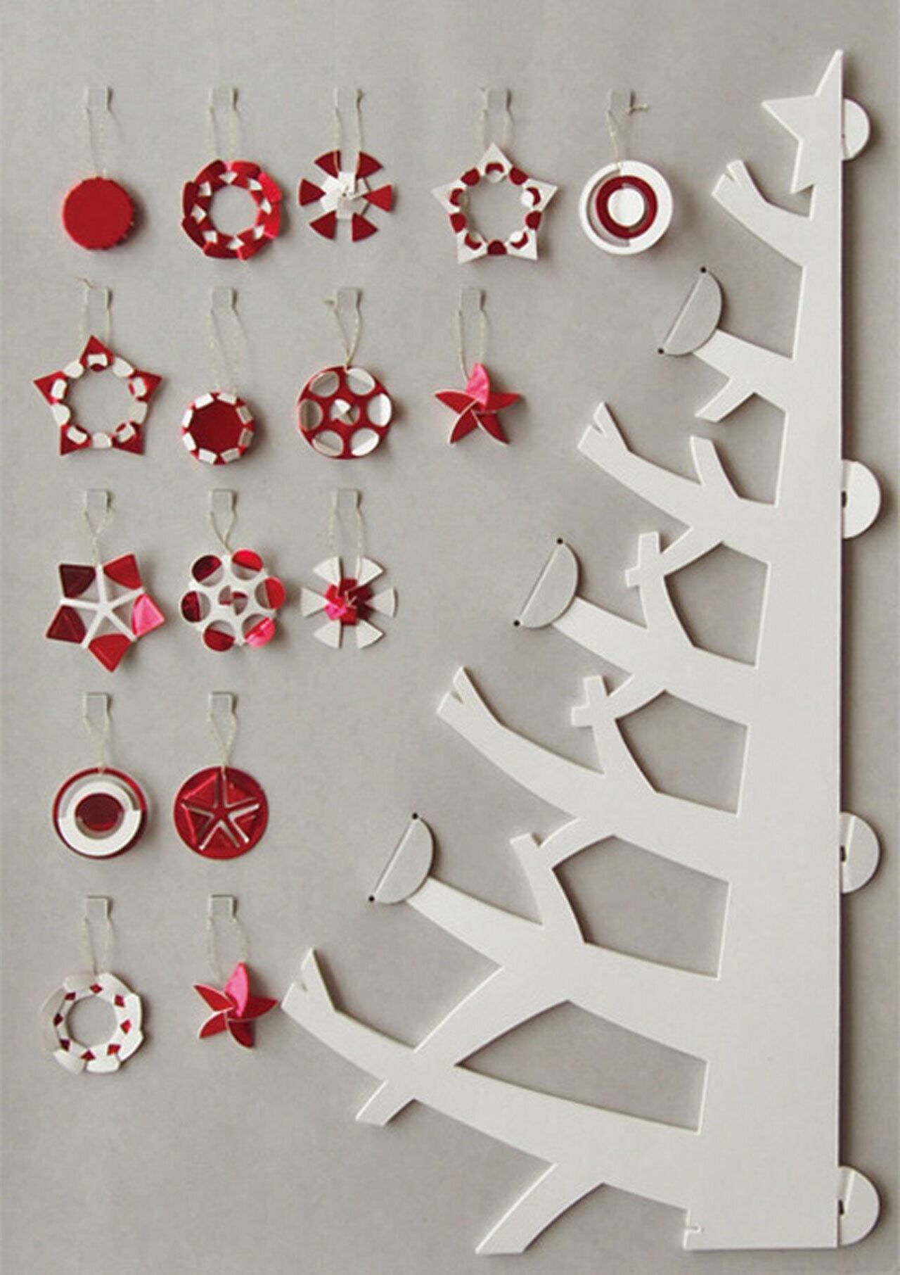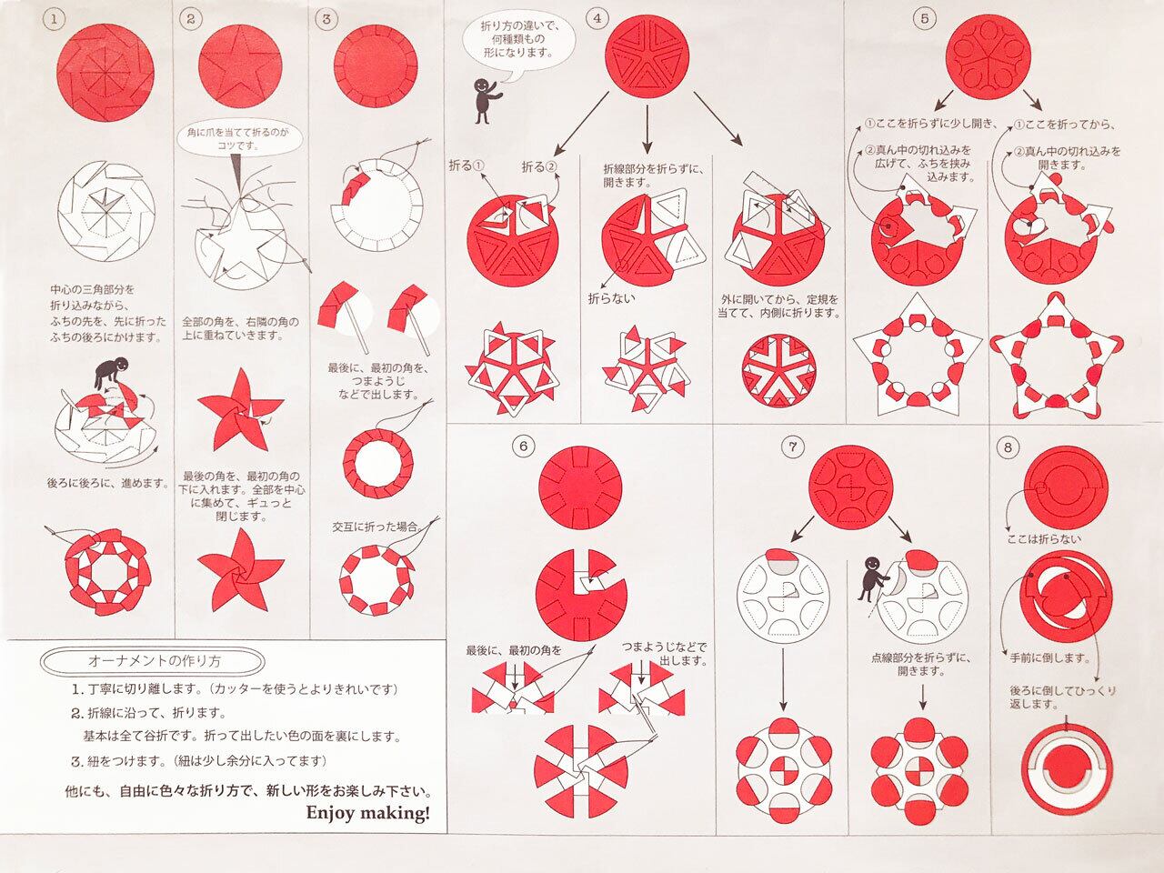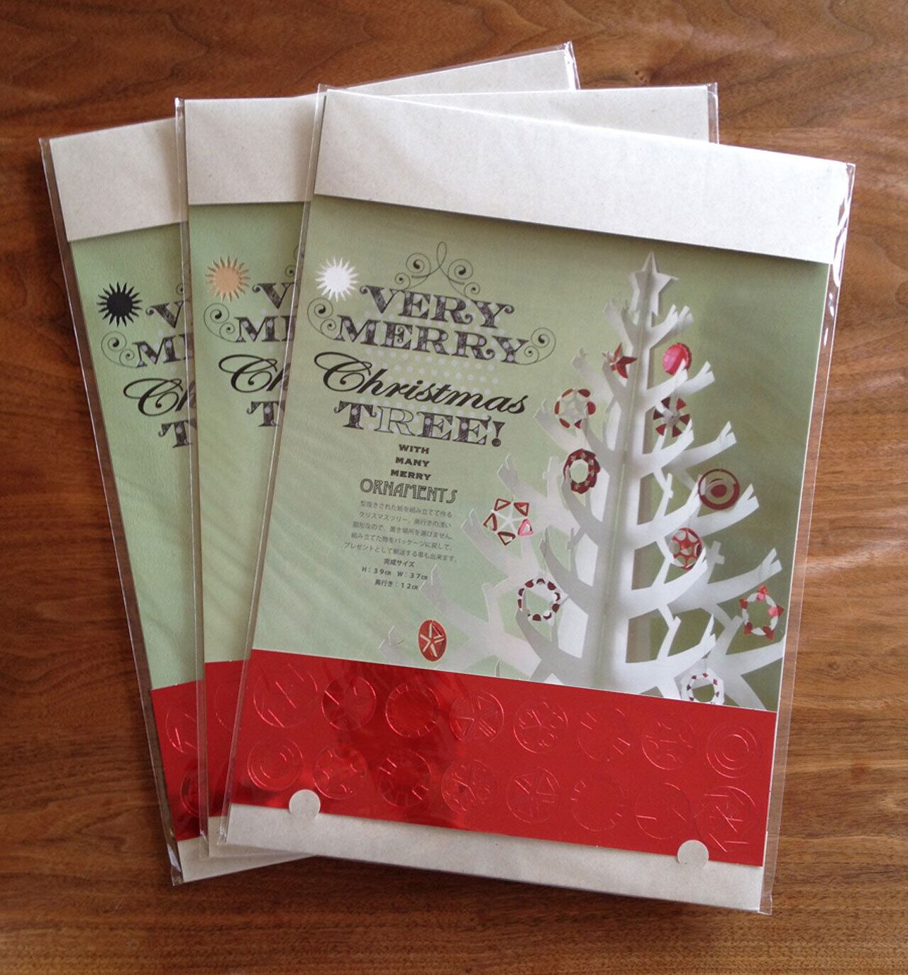 型抜きされた紙を組み合わせたり折ったりして ツリーを作るペーパークラフト。オーナメントはアルミ蒸着紙で、同じ丸の形から様々な模様が出現します。